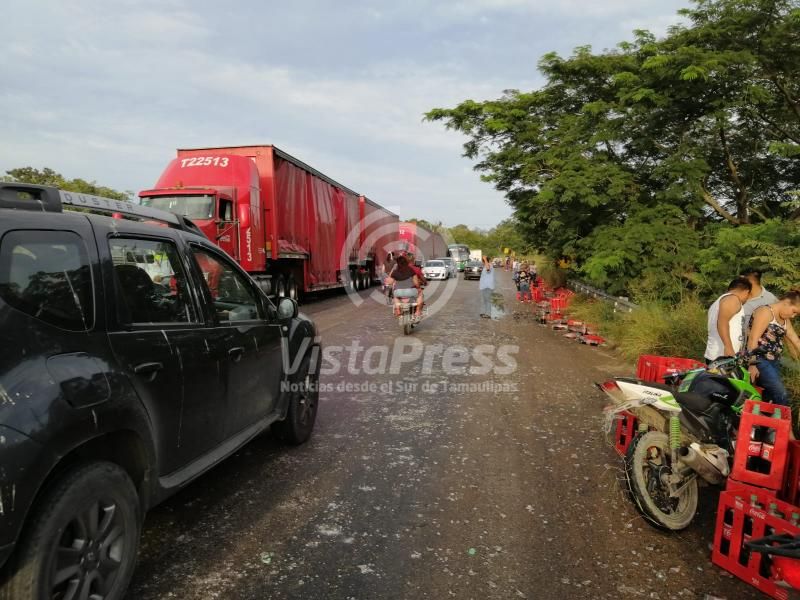 Trailer cargado con refrescos de cola choca contra compacto Tres lesionados