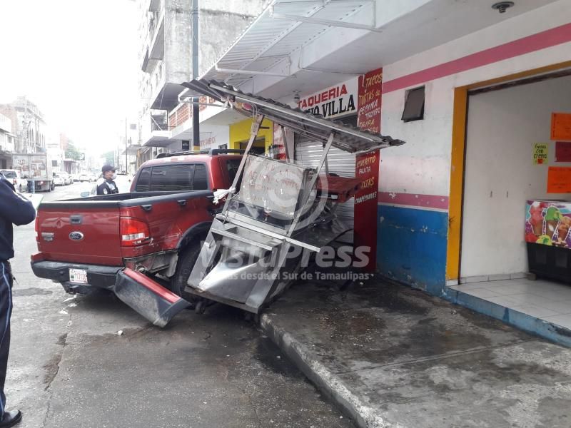 Bus choca a camioneta y ésta termina en una taquería Tampico, Tam. Fuertes daños materiales y dos pasajeros de un…