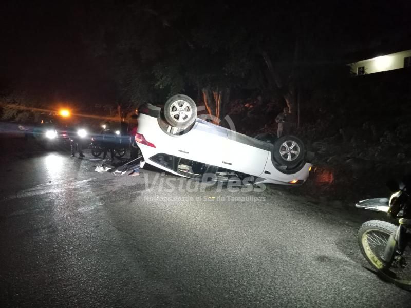 Altamira, Tam. Una camioneta terminó volcada con las llantas hacia arriba resultando un niño lesionado que tuvo que ser trasladado…