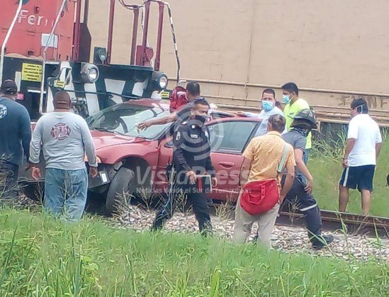 Altamira, Tam. Fuerte susto se llevó una conductora que fuera impactada a bordo de su vehículo compacto por el tren…