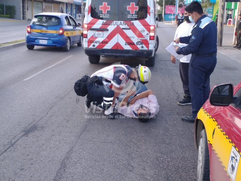Taxi en reversa tumba a motociclista en la Sexta Avenida