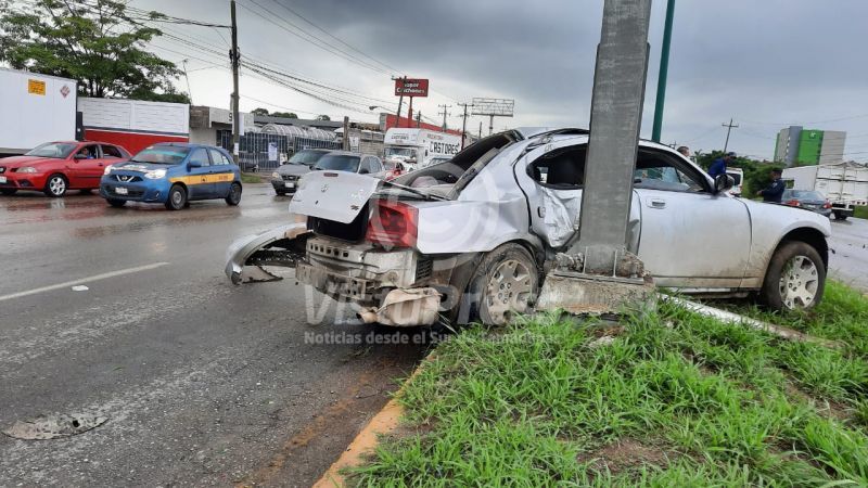 Se salvan de milagro al chocar con poste en Altamira