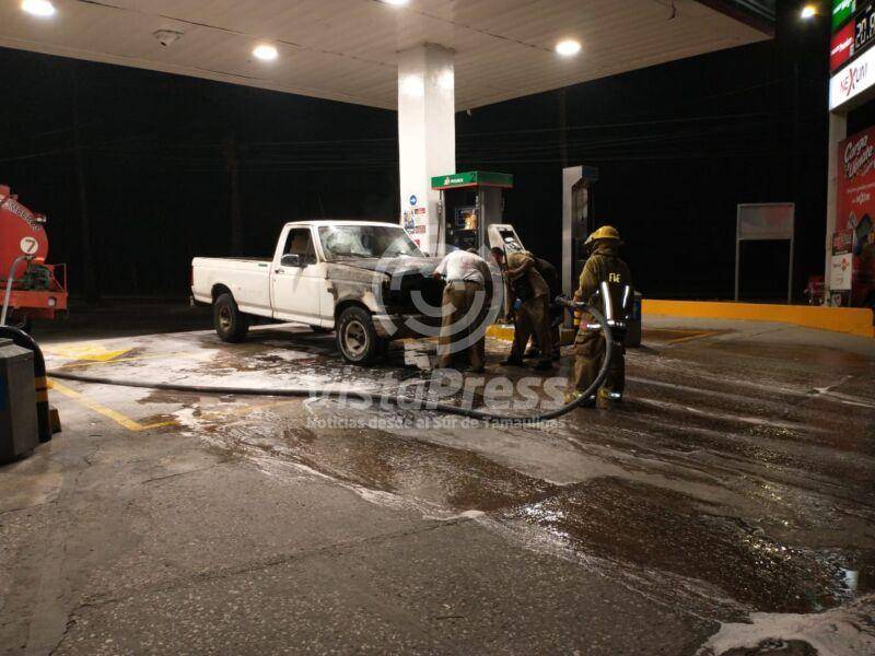 A abuelo recién vacunado se le incendia camioneta en gasolinera