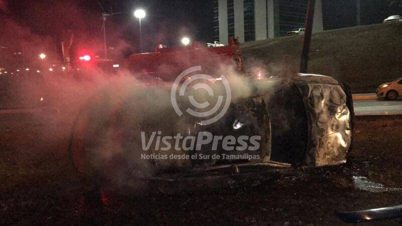 Vuelca, lo rescatan y carro se incendia; pero muere minutos después