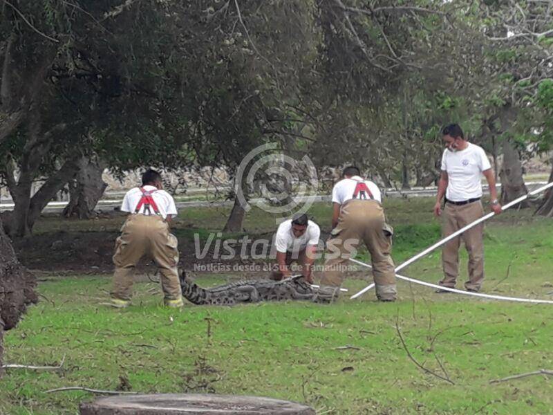 Tampico, Tam.- Un cocodrilo de poco más de dos metros de longitud, fue capturado por los Bomberos, pues éste salió…