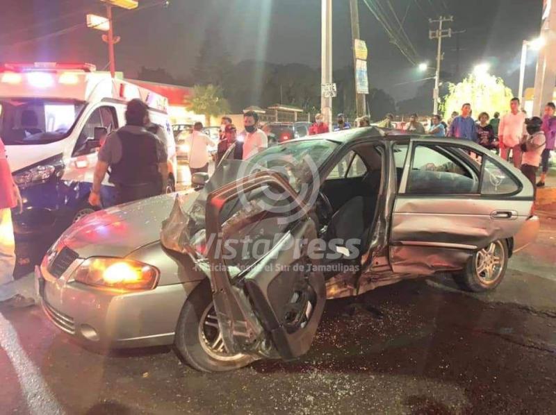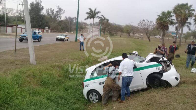 Altamira, Tam. Un vehículo habilitado como taxi se impactó en un poste de madera en el centro de la ciudad,…