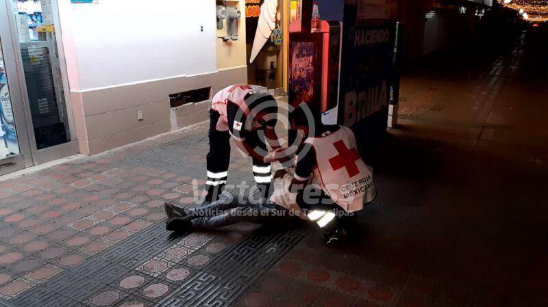 Tampico, Tam. Elementos de la Cruz Roja asistieron a la atención de un hombre que se encontraba tirado en el…