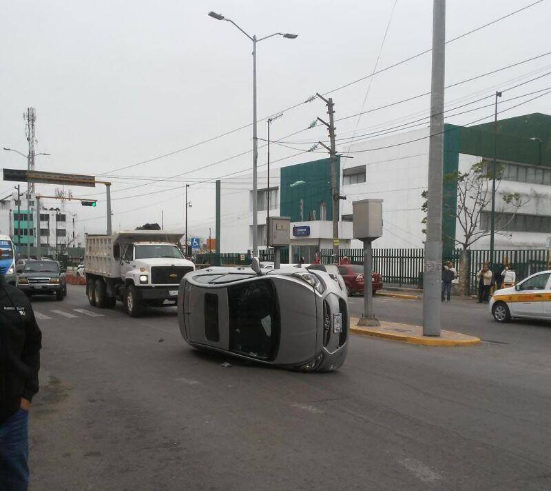 Vehículo compacto termina volcado y de milagro conductor sale ileso