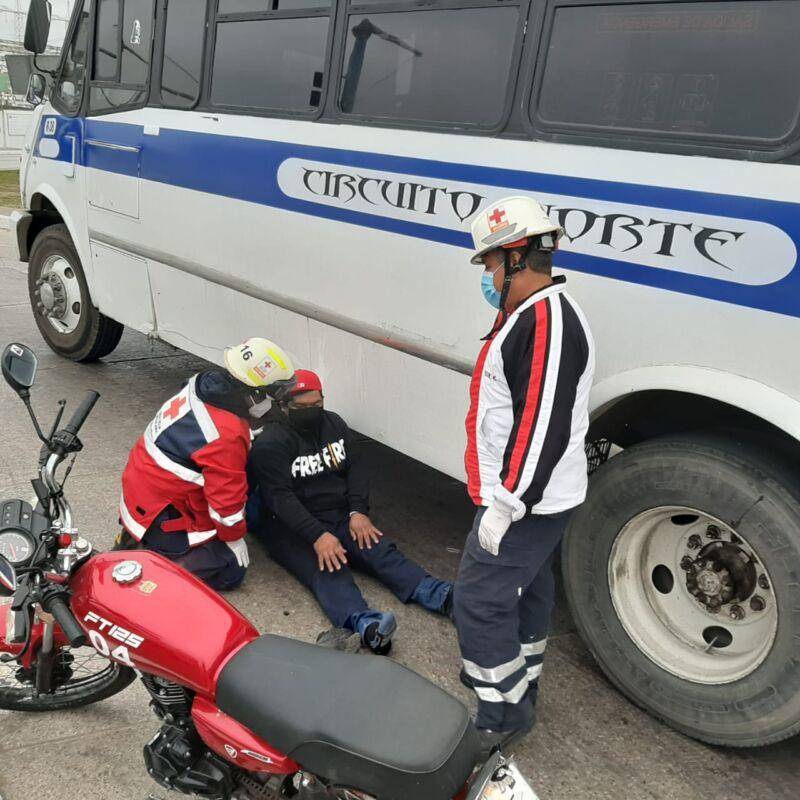 Tampico, Tam. Un motociclista resultó con una pierna fracturada al ser embestido por un autobús urbano; ambos se desligaban de…