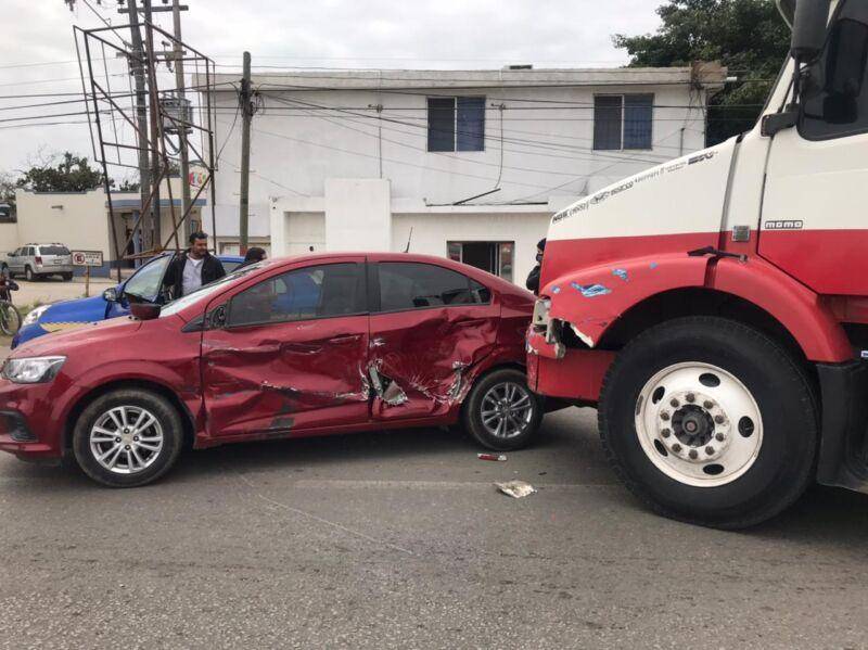 Altamira, Tam. Con fuertes daños materiales terminó un vehículo compacto que fuera impactado por un tráiler en la avenida de…
