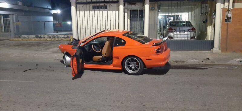 Jugaba “carreritas” en su deportivo y lo impacta en negocio: queda herido