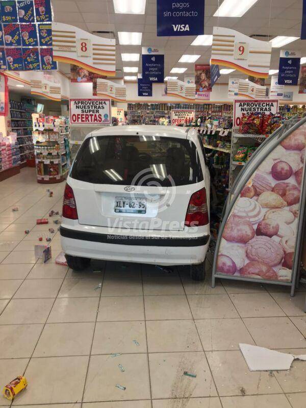 Altamira, TAM. un hombre que conducía a exceso de velocidad un vehículo compacto terminó en el interior de una farmacia…