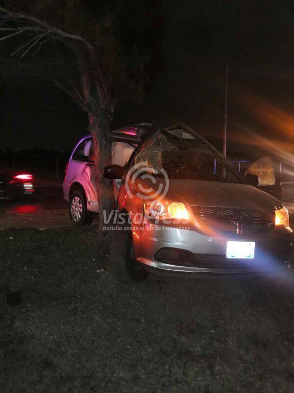 Tampico, Tam. Una camioneta se estrelló de frente en contra de un árbol de un área verde frente a la…