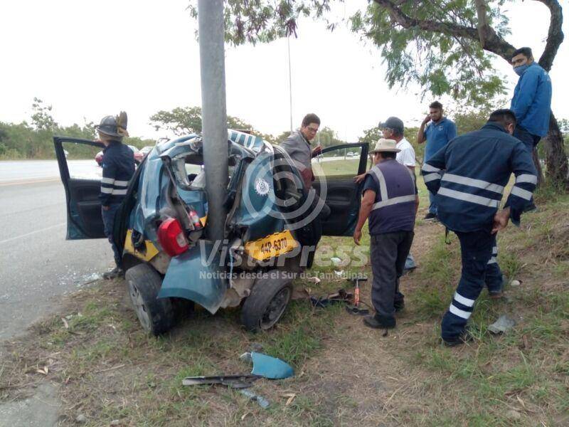Altamira, Tam. Dos amanecidos sujetos salvaron de milagro sus vidas luego de que chocarán fuertemente en contra de un poste…