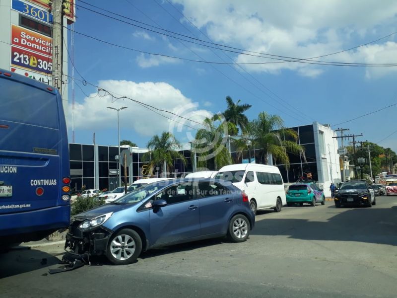 Tampico, Tam.- Un autobús urbano que viajaba de sur a norte por la Avenida Hidalgo impactó a un vehículo compacto,…