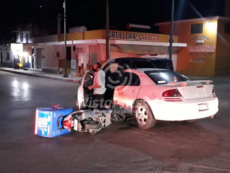 Repartidor de pizzas se estampa en carro en el centro de Tampico
