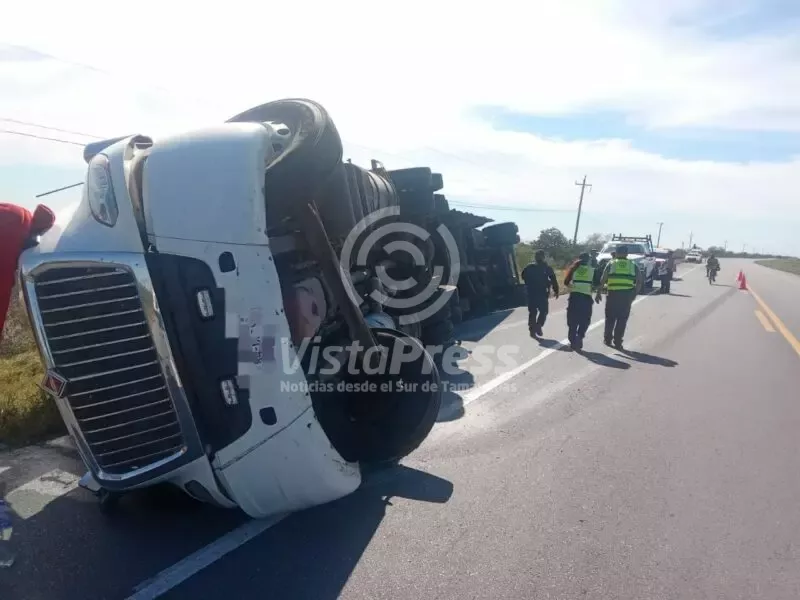 Vuelca tráiler en la Victoria-Matamoros