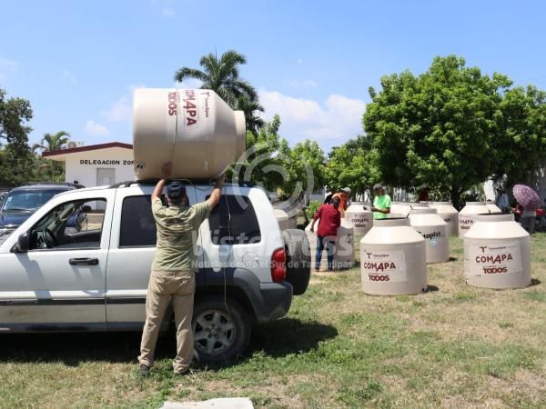 Entrega COMAPA Altamira tinacos en la zona sur