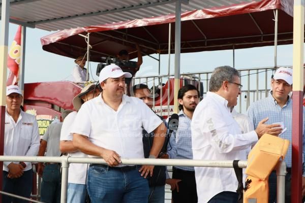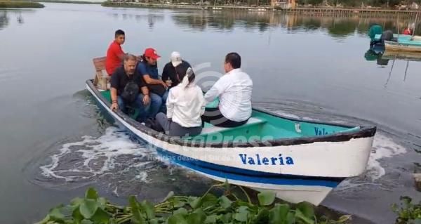 Alcalde Armando Martínez y empresarios supervisan avances de dragado en Laguna del Champayán