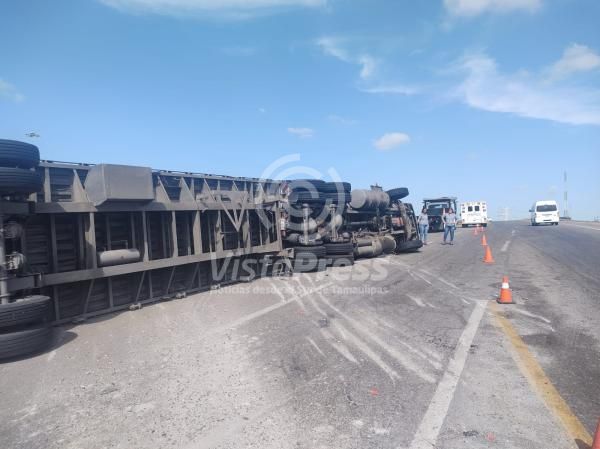Altamira, TAM.- El conductor de un tractocamión resultó lesionado tras volcar en su unidad en el distribuidor vial del Puerto…