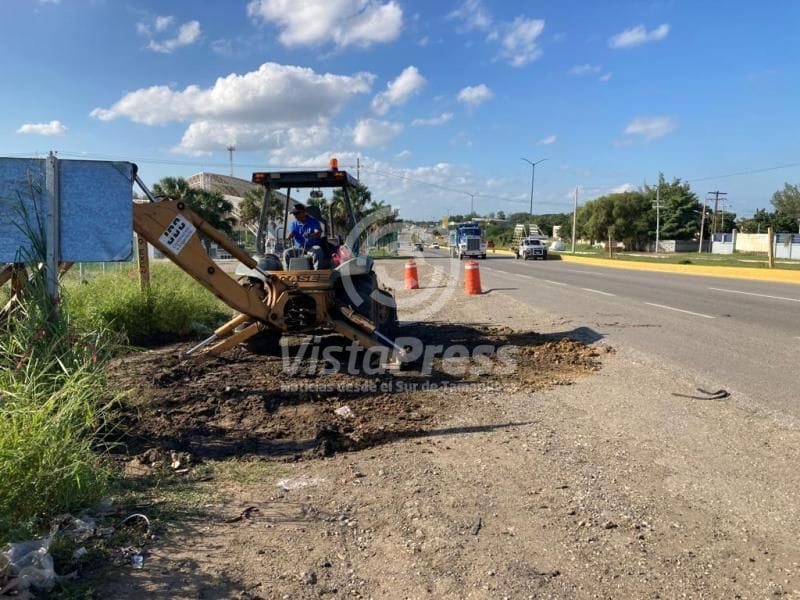 COMAPA Altamira repara fugas de agua en carretera Tampico-Mante