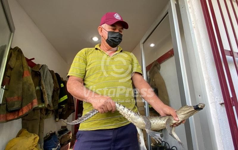Altamira, Tam.- Un pequeño cocodrilo que deambulaba por la avenida de la Industria fue rescatado por los Bomberos y resguardado…