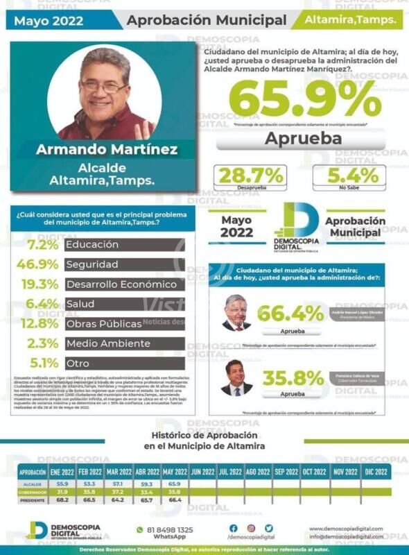 Alcanzando un puntaje histórico en este municipio con el 65.9 por ciento de aprobación El presidente municipal de Altamira, Armando…