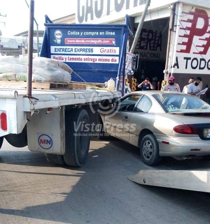Carro se impacta en camión materialista en la Sexta Avenida