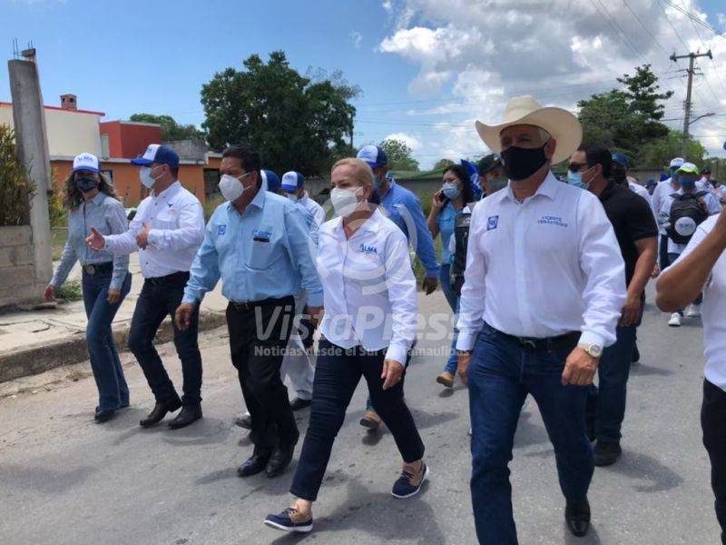 Invitando a los residentes de Villa Cuauhtémoc y de la zona rural de Altamira a votar por la fórmula panista…