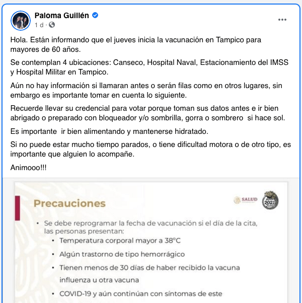 Lamentan “Fake News” de aplicación de vacuna en Tampico y Madero