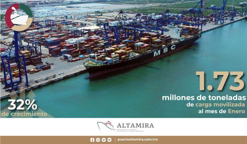 El puerto de Altamira registra crecimiento en el flujo de carga durante el inicio de 2021.
