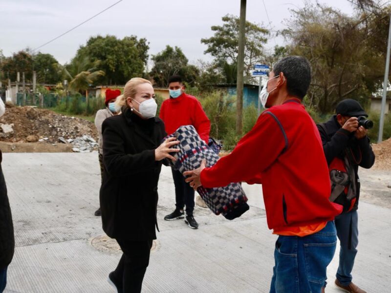 Entrega Alma Laura Amparán cobertores en sectores vulnerables de Altamira