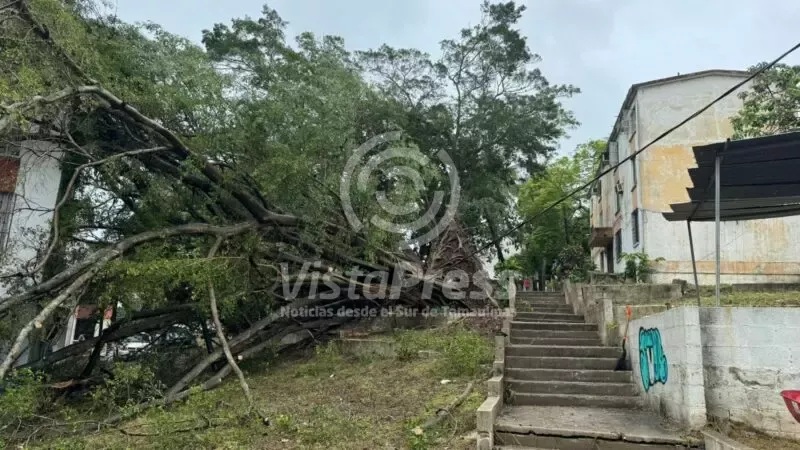 Lluvias fuertes provocaron la caída de árboles en la zona sur de Tamaulipas