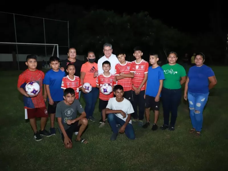Inaugura AMM red de alumbrado en campo deportivo del ejido Ricardo Flores Magón