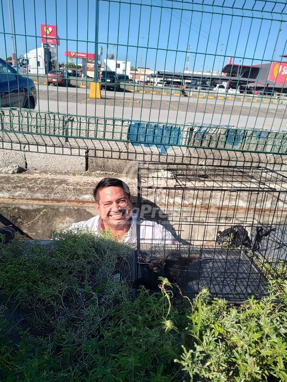 Rescatan a gatito atrapado en canal a cielo abierto en Altamira