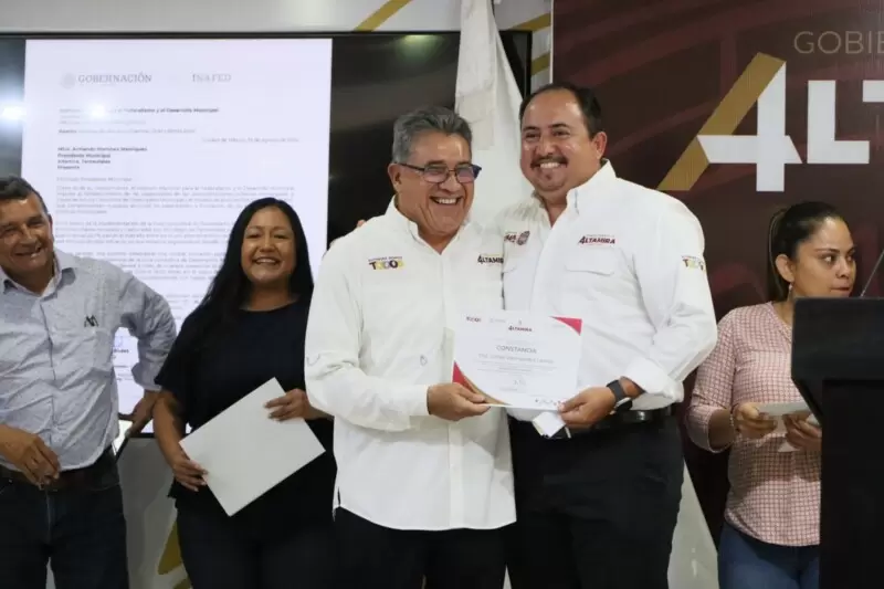 Entrega alcalde Dr. Armando Martínez Manríquez reconocimiento a COMAPA Altamira