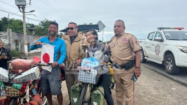 Pareja de japoneses continúan su viaje en bici por Tamaulipas; su destino es llegar a Argentina