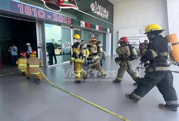Realizan simulacro de incendio en Torre Bicentenario