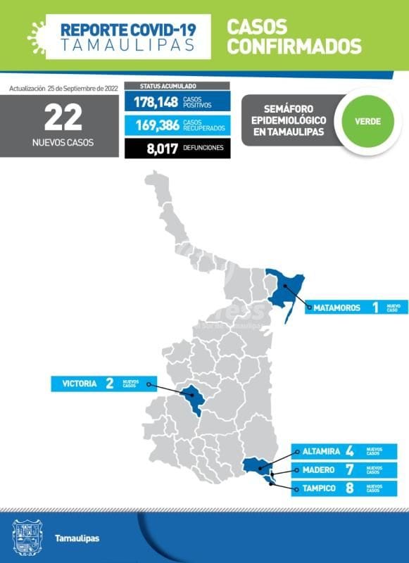 CIUDAD VICTORIA, TAMAULIPAS.- Tamaulipas cerró la jornada con 22 pacientes positivos a COVID-19, informó en su reporte diario la secretaria…