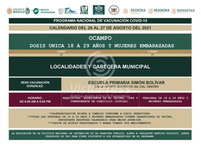 Vacunación juvenil llega a Gómez Farías, Xicoténcatl y Ocampo