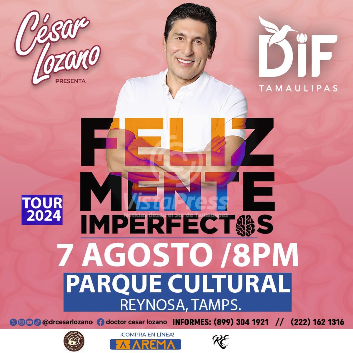 Ciudad Victoria, Tamaulipas.- Los próximos 7 y 8 de agosto, el destacado conferencista César Lozano impartirá su ponencia "Felizmente Imperfectos”…