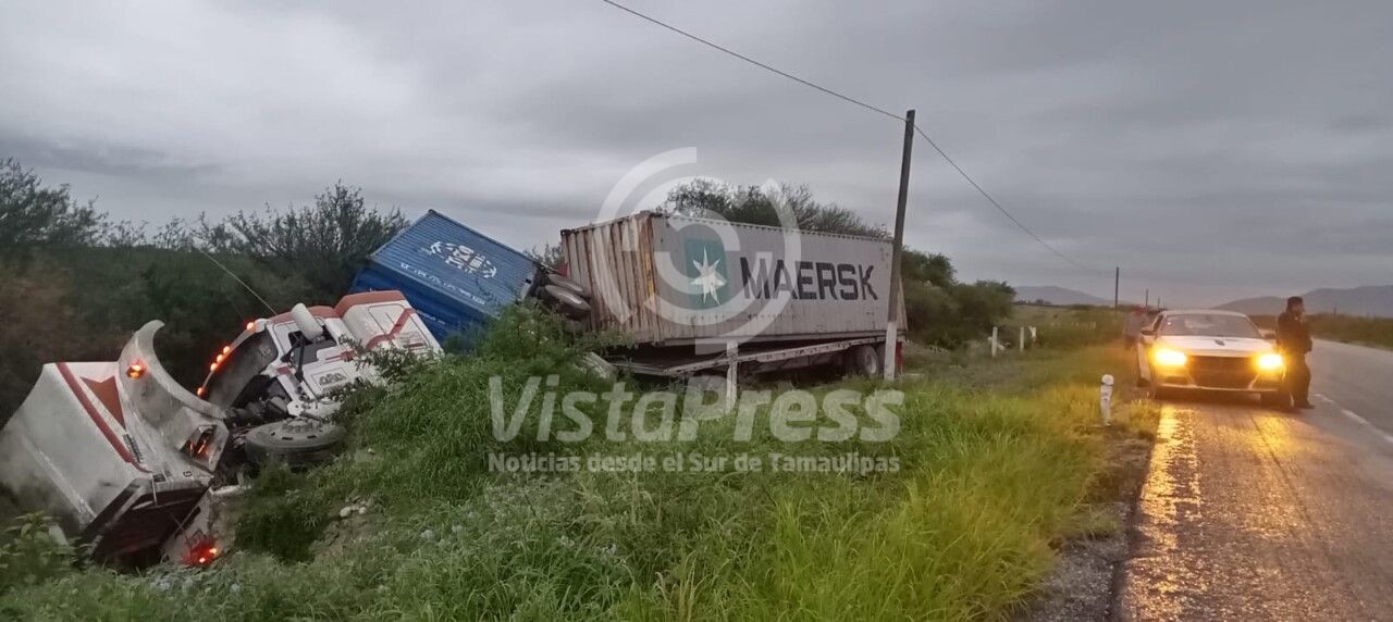 Guardia Estatal auxilia a conductor de tractocamión lesionado en volcadura