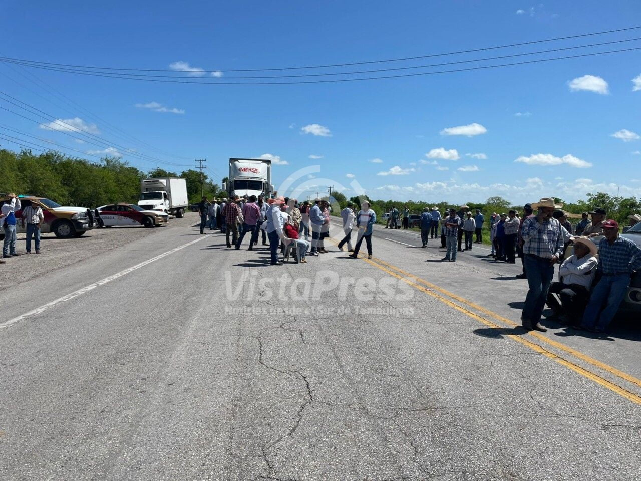 Manifestación agrícola en Carretera San Fernando-Matamoros bloquea circulación vehicular