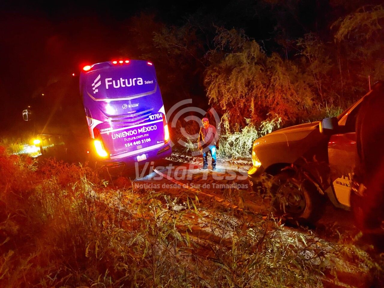 Guardia Estatal auxilia a conductor y pasajeros de autobús atascado en brecha de San Fernando