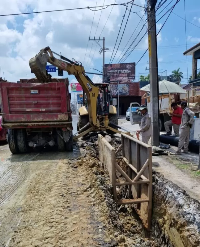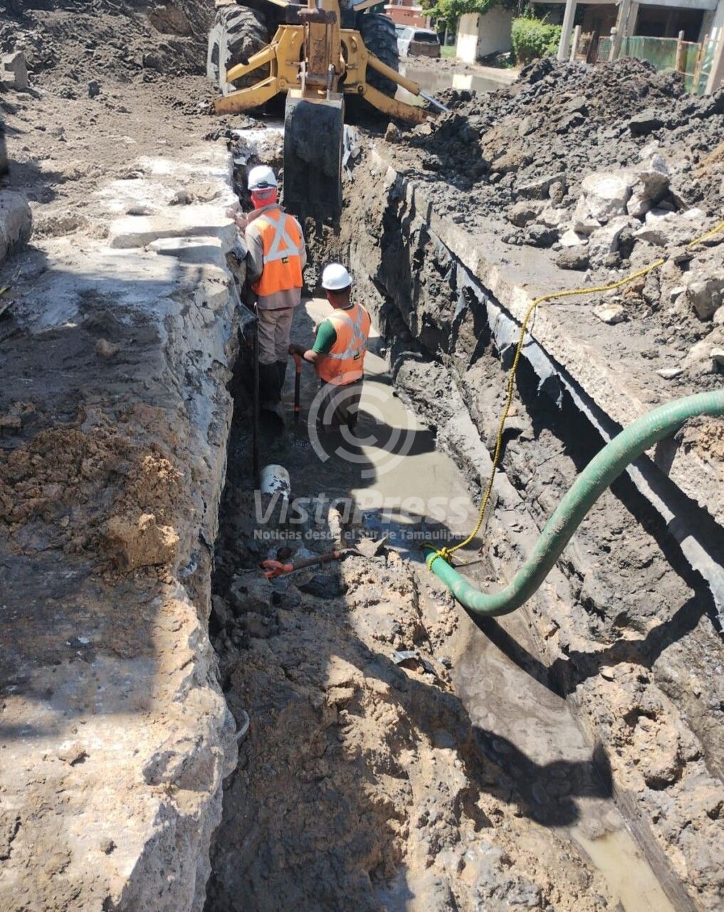 Personal de COMAPA SUR trabaja de manera acelerada en la reposición de un tramo de una línea de drenaje…
