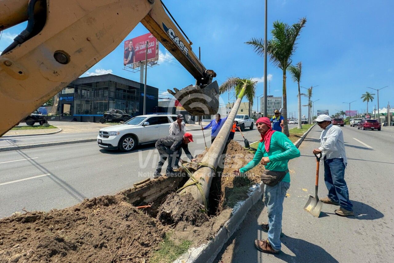 Renuevan palmeras y elementos de ornato en vialidades porteñas