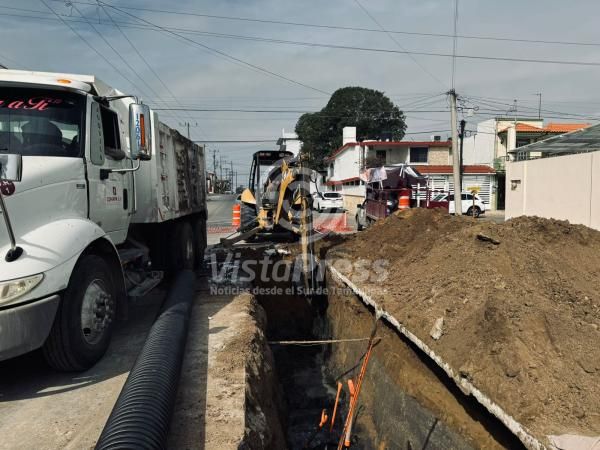 Notable avance registran los trabajos de reparación de una línea general de drenaje en la colonia Ampliación de la Unidad…