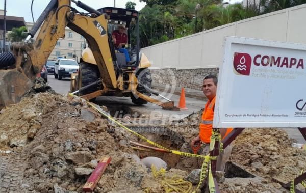 Trabajadores de COMAPA SUR realizaron de manera oportuna labores de reparación de una línea de drenaje en importante sector de…