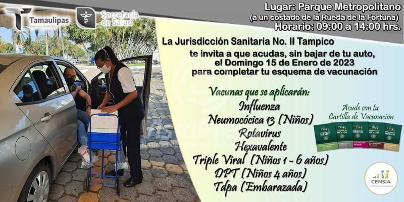 Tampico.- Este domingo 15 de enero, la Jurisdicción Sanitaria II Tampico-Madero realizará un "Drive Thru " para completar el esquema…