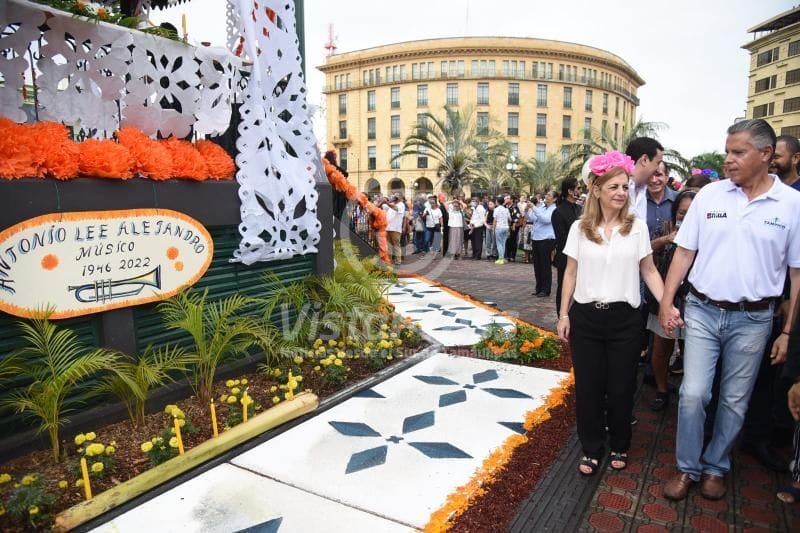 Encabezan Chucho Nader y Aída Féres de Nader instalación de monumental altar de Día de Muertos